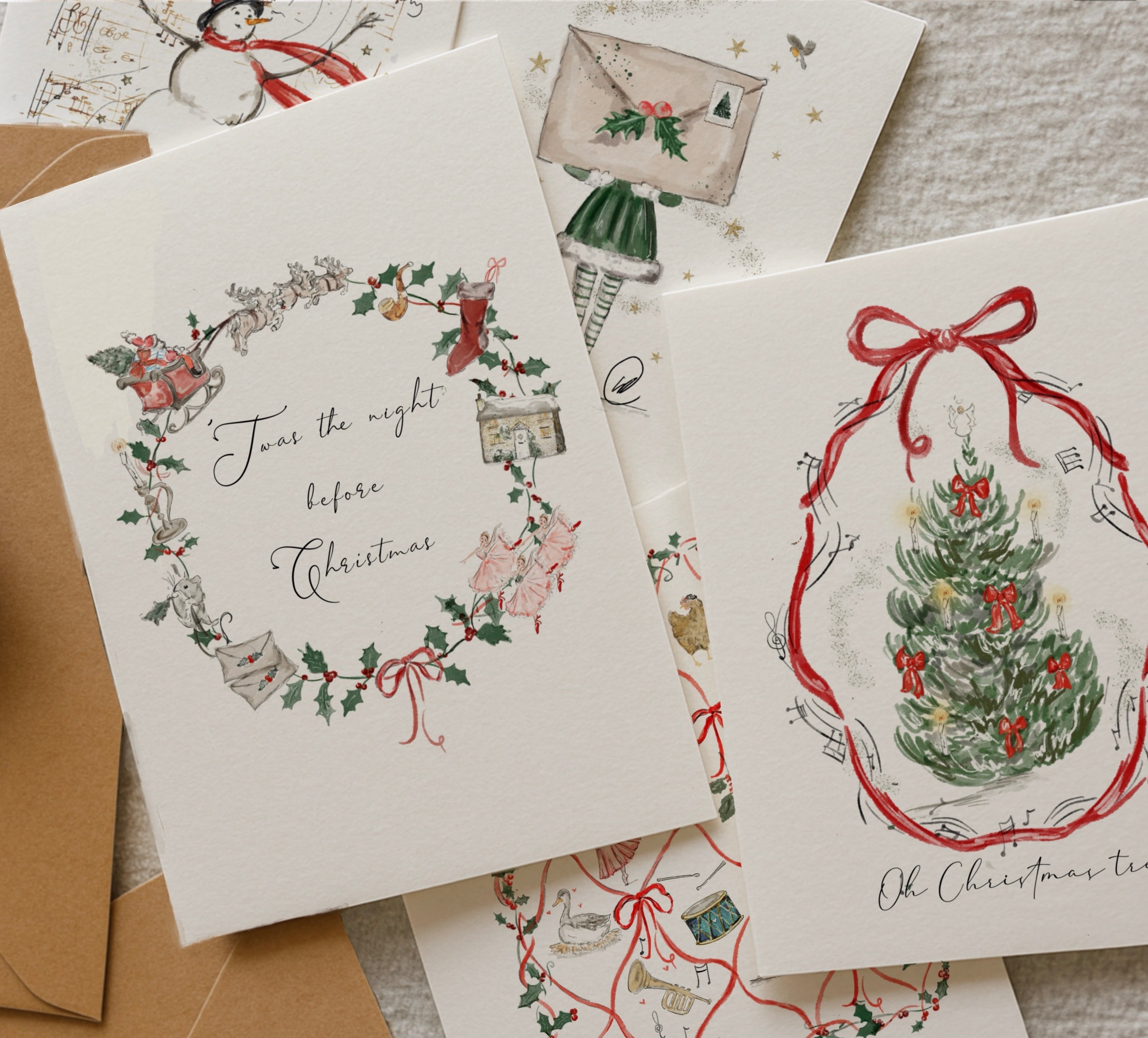 Pack 2: 12 x illustrated cards celebrating the magic of Christmas. My favourite designs from each collection, inspired by childhood memories all wrapped up to help you spread the love this holiday season.